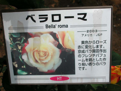 黄色からローズ赤に変化します。(谷津バラ園名札より)
