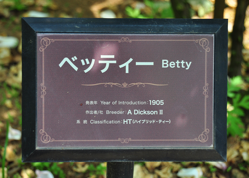 撮影地の京成バラ園の名札はベティではなく「ベッティー」。