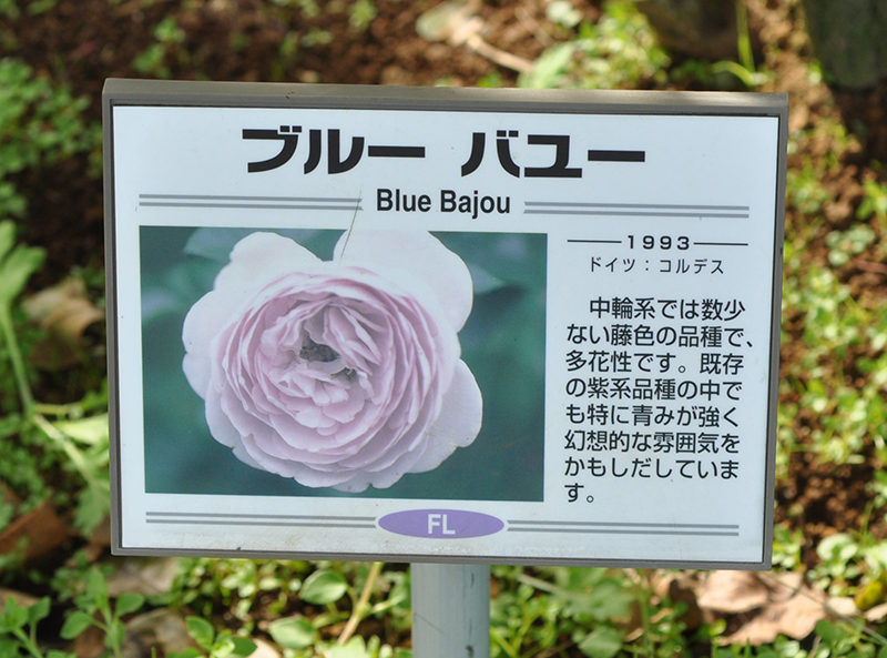 既存の紫系品種の中でも特に青みが強く幻想的な雰囲気をかもしだしています。(京成バラ園名札より)