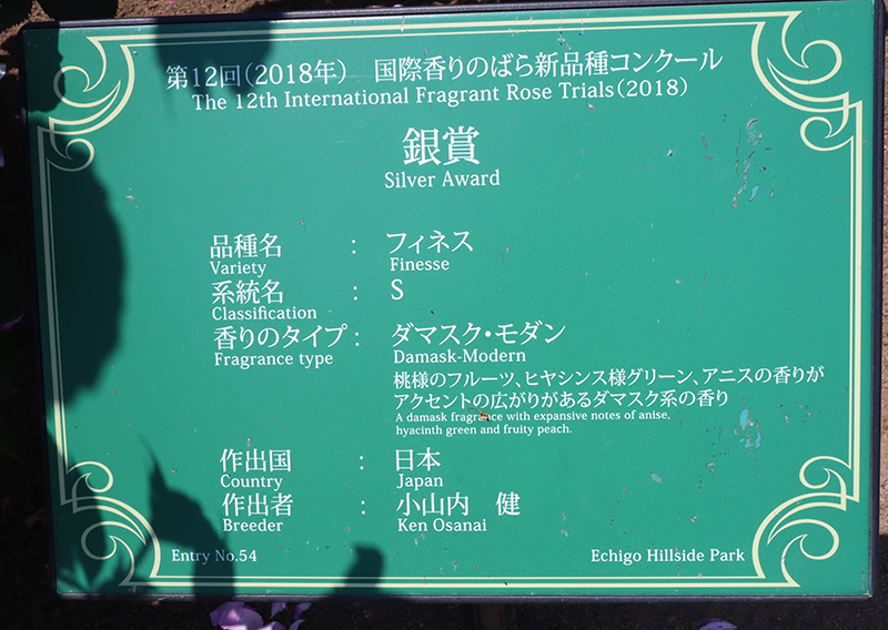 2018 第12回越後丘陵公園 国際香りのバラ新品種コンクール 銀賞