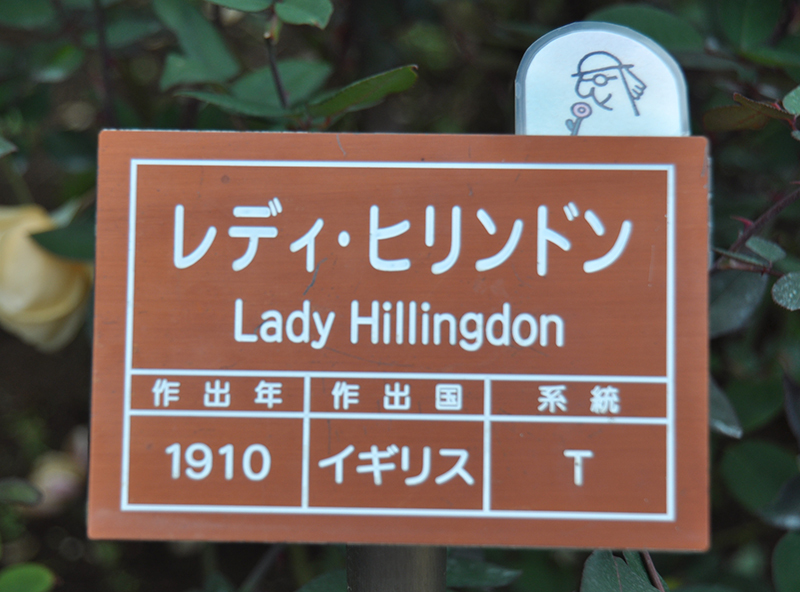 花は半八重咲きの中大輪。花色は杏色で花弁の先は白くぼける。紅茶のような甘い香りがする。この花の色と香りをしのぐバラは、現代バラにもないといわれている。1910年イギリス ロー&ショーヤー氏作出。ティー(T.)系。オールドローズ(T.)(神代植物公園名札より)