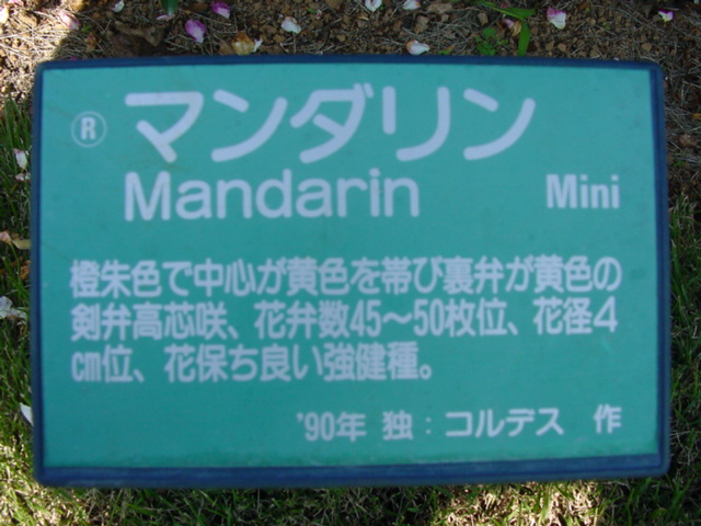 マンダリン 四季咲き 2013.11.092025.10.25 Mandarin 10月20日 京成バラ園 別名 種類 Min ミニチュア 作出・発表年 1979 作出者 Kordes & Sons, W. 作出国 ドイツ 受賞 親子関係 メモ Kordes社に同名のバラがあります。 名札 京成バラ園