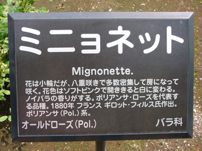 花色はソフトピンクで開ききると白に変わる。ノイバラの香りがする。ポリアンサ・ローズを代表する品種。(神代植物公園名札より)