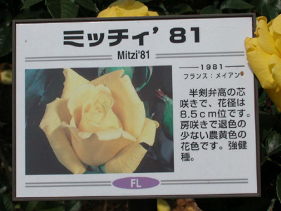 ミッチイ’81 イエロー 2013.08.292025.10.29 Mitzi 81 5月21日 谷津バラ園 別名 ミッチイ81 ミッチー’81 種類 F フロリバンダ 作出・発表年 1980以前 作出者 Meilland, Alain 作出国 フランス 受賞 親子関係 メモ 名札 谷津バラ園