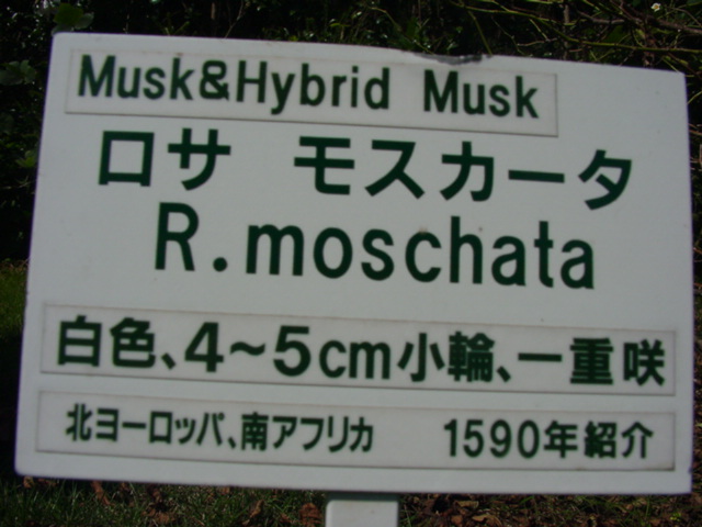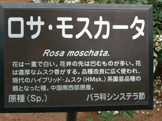 花は一重で白い。花弁の先は凹むものが多い。花は濃厚なムスク香がする。品種改良に広く使われ、現代のハイブリッド・ムスク(HMsk.)系園芸品種の親となった種。中国南西部原産。原種(Sp.)シンステラ節(神代植物公園名札より)