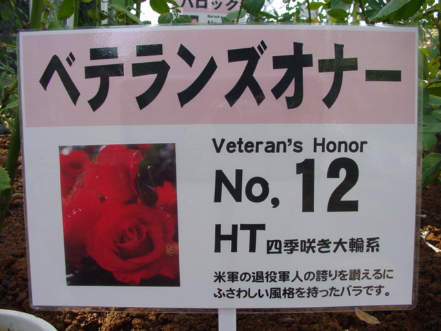 米国の退役軍人の誇りを讃えるにふさわしい風格をもった花です。(バラの家より)